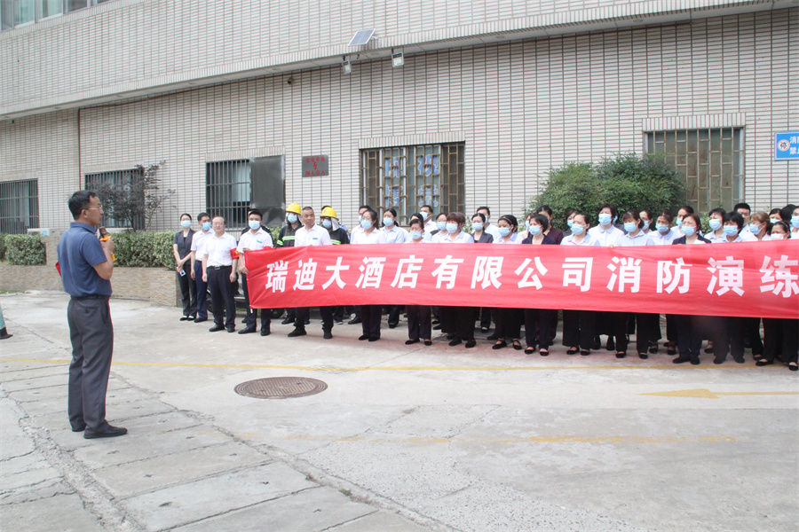 为强化员工消防安全意识、提高员工在突发火灾时应急处置、疏散逃生能力,按照酒店“安全生产月”活动计划,瑞迪大酒店于6月29日举行2022年夏季消防应急演练。